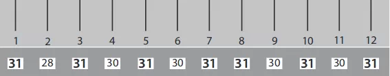 Veja as distorções aqui referidas, no gráfico que aparece abaixo, denominado RÉGUA GREGORIANA DE 12 MESES, mostrando que ele é como uma régua cujos centímetros têm diferentes tamanhos.